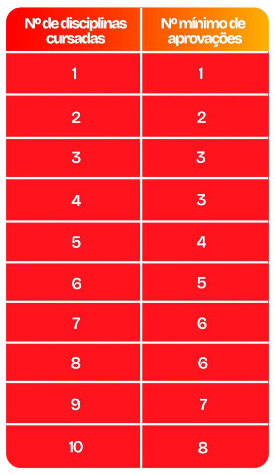 Nº de disciplinas cursadas Nº mínimo de aprovações